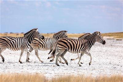 Während der Trockenzeit zeigt sich die Makgadikgadi-Salzpfanne als schimmernde, weiße Ebene. Sie vermittelt ein einzigartiges Gefühl von Weite. An den Rändern entsteht spärliches Grasland, das vor allem in Kombination mit dem klaren Licht eindrucksvolle Fotomotive bietet, die sich ideal für stimmungsvolle Bilder eignen.
