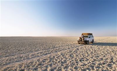 Die Makgadikgadi-Salzpfanne, die zu den spektakulärsten Landschaften Botswanas gehört, ist ein Höhepunkt vieler Botswana Rundreisen.