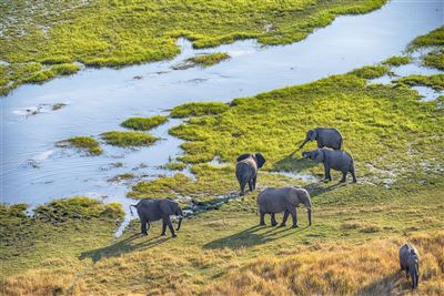 Eines der beeindruckendsten Naturwunder Afrikas ist das Okavango-Delta in Botswana. Eines der größten Binnendeltas der Welt wird von den fächerförmig ausbreitenden Wassermassen des Okavango-Flusses über die endlosen Weiten der Kalahari geschaffen.