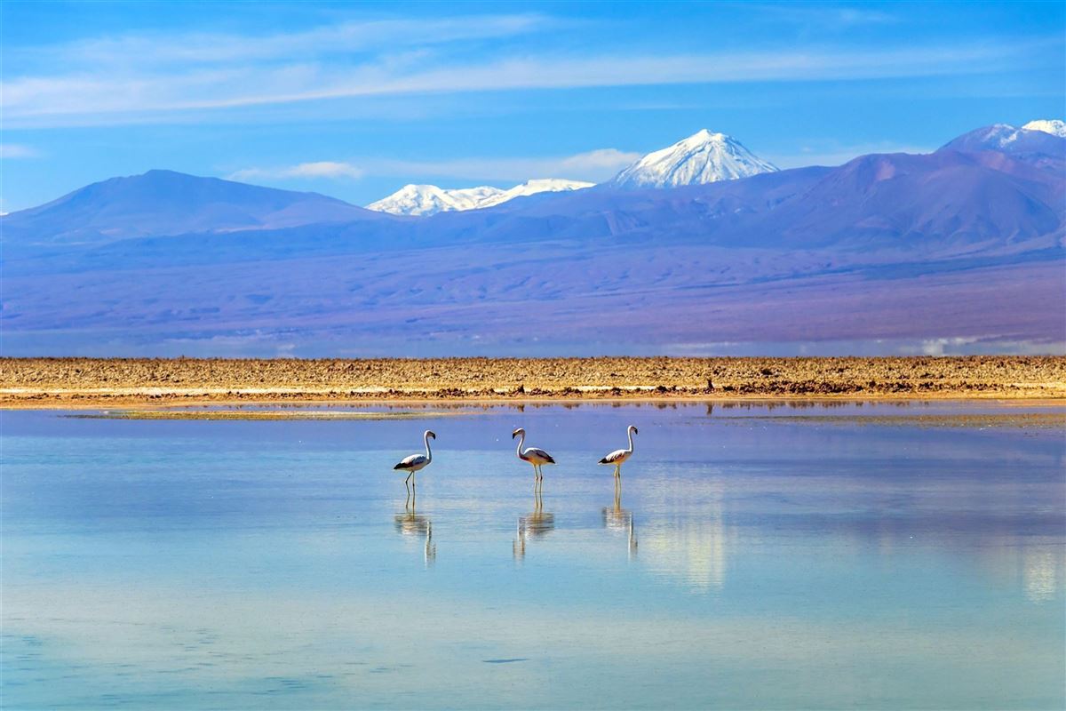 Der Salar de Atacama, eine riesige Salzebene, die in der Sonne glitzert und von Lagunen durchzogen ist, ist ein weiteres Highlight der Atacama-Wüste. Hier findet man Flamingos, die im seichten Wasser nach Nahrung suchen. Im Hintergrund erheben sich die mächtigen Anden. Die Laguna Chaxa, wo man die eleganten Vögel in ihrem natürlichen Lebensraum beobachten kann, ist besonders beeindruckend.
