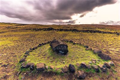 Ihr Abenteuer startet am Rano Raraku, dem steinernen Herzen der Insel. Dieser erloschene Vulkan hat früher als Steinbruch für die Moai gedient. Dort findest du auch immer noch unvollendete Statuen. Man kann sich gut vorstellen, dass die Schöpfer dieser Werke eines Tages zurückkehren und ihre Arbeit vollenden werden. Während du den Hang hinaufsteigst, spürst du, wie beeindruckend die Kraft und Mühe sind, die in jedem dieser Monumente stecken.