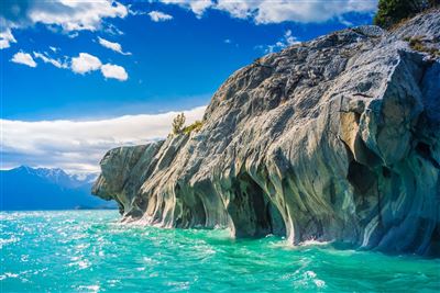 Auf einer Rundreise durch Chile sind die Marmorhöhlen Puerto Rio Tranquilo am Carrera-See definitiv einen Besuch wert: die schneeweißen Marmorformationen und das kristallblaue, reflektierende Wasser des Sees wirken so übernatürlich schön, dass man meinen könnte, sie seien von einem Künstler entworfen worden. Genau deswegen werden sie auch "Catedral de Mármol", also Marmor-Kathedrale, genannt. Dabei entstanden die Gesteinsformen nicht von Menschenhand, sondern durch die Wellen des Carrera-Sees, die den Marmor über Jahrtausende hinweg zu seiner heutigen Gestalt formten.