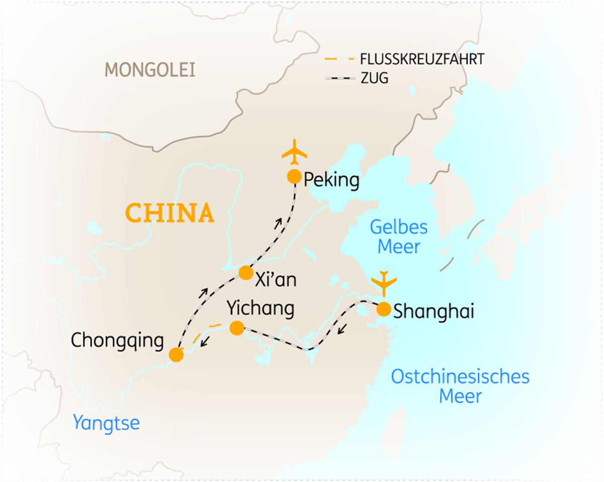 0Ein Seitenfluss des Yangtze bringt Sie ganz nah an die unberührte Natur Zentralchinas heran. Mit kleineren Booten entdecken Sie die beeindruckende Flusslandschaft. Zurück auf dem Kreuzfahrtschiff durchqueren Sie zwei der spektakulärsten Abschnitte des Yangtze: die anmutende Wu Schlucht mit ihren nebelverhüllten Hängen und die enge, steil aufragende Qutang-Schlucht, die den Fluss auf eindrucksvolle Weise einrahmt. (F/M/A)
