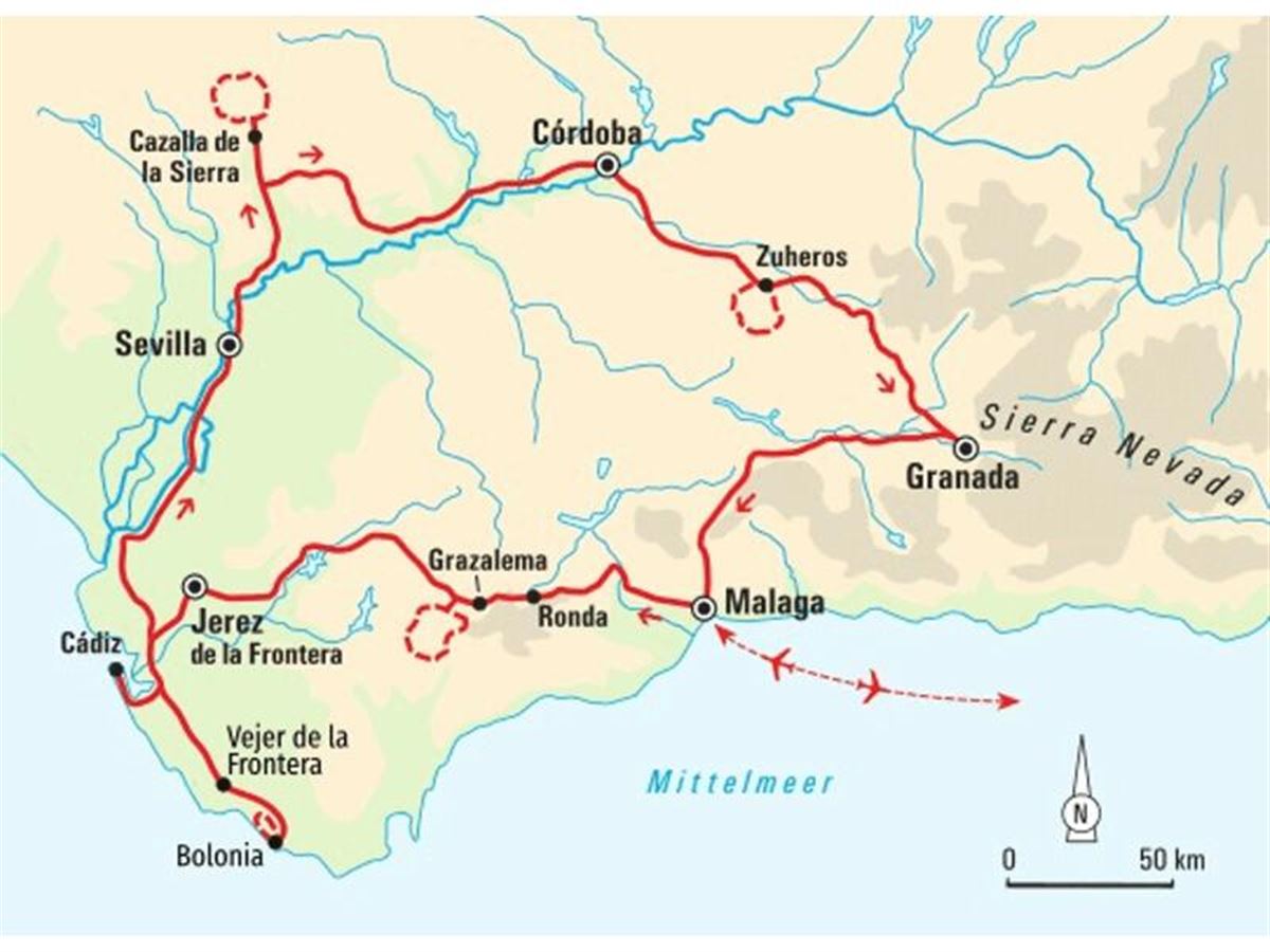 Der Vormittag steht ganz im Zeichen der Alhambra. Die Palastanlage mit ihren Pavillons, Säulenhallen und Höfen liegt auf einem bewaldeten Hügel, von dem wir immer wieder grandiose Ausblicke über die Stadt genießen. Die Alhambra besteht aus drei Bereichen: dem "Palacio de Generalife" mit seinen wunderschönen Gartenanlagen und Wasserspielen, der wuchtigen "Alcazába" (die Burg), die zum ältesten Teil des Komplexes gehört, und den "Nasridenpalästen", dem Herzstück der Alhambra mit ihren filigranen Stuckarbeiten aus der Blütezeit der maurischen Baukunst. Nachmittags setzen wir unseren Stadtspaziergang in der christlichen Altstadt fort. Am Abend treffen wir uns wieder zu unserem letzten gemeinsamen Abendessen und lassen unsere Eindrücke des bunten Andalusiens Revue passieren.Wichtiger Buchungshinweis: Bitte beachten Sie, dass die Besucherzahl der Alhambra stark beschränkt und der Erwerb der Eintrittskarten zudem personalisiert ist. Bitte teilen Sie uns deshalb bei Buchung Ihre Passdaten des Ausweisdokuments (Personalausweis oder Reisepass) mit, das Sie auf der Reise mitführen! Für Teilnehmer, für die es keine Eintrittskarten mehr gibt, ist ggf. der Besuch der Gärten der Alhambra ohne die Nasriden-Paläste ersatzweise möglich.