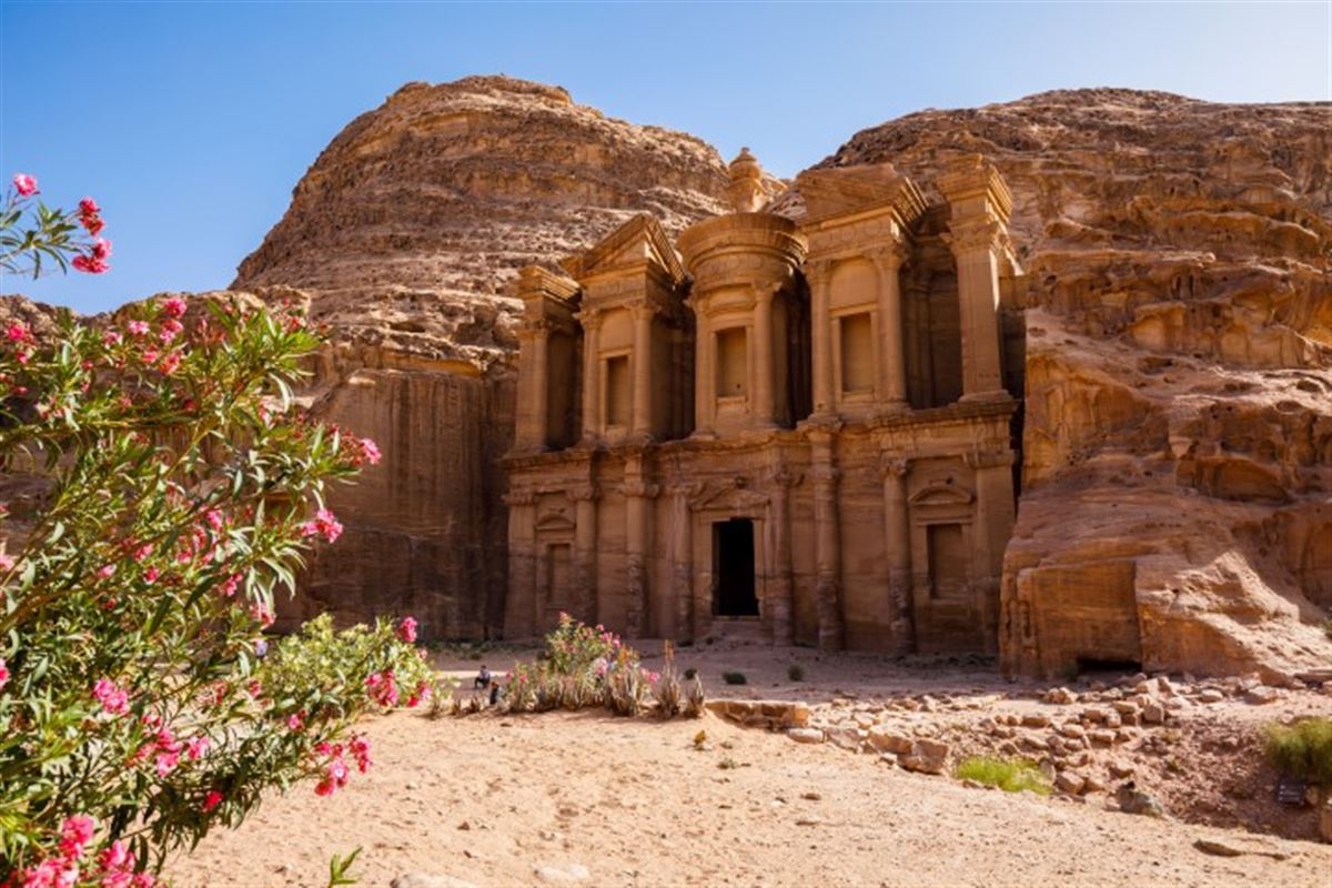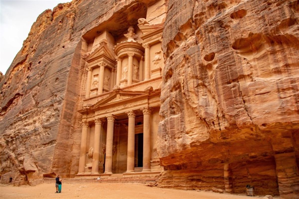 Kaum ein Sonnenstrahl dringt zu uns, wenn wir zwischen Felswänden durch den schmalen Sik gehen. Diese Schlucht ist der Zugang zur Nabatäerstadt Petra (UNESCO-Welterbe). Nach zwei Kilometern zwischen engen Canyonwänden taucht das gigantische Schatzhaus des Pharao vor uns auf. In dem Talkessel erheben sich Paläste, Tempelfassaden, Königsgräber und Säulenstraßen. Etwa 1000 Baudenkmäler wurden direkt aus dem Sandstein herausgearbeitet. Nach einer Verschnaufpause folgt für Wanderfreunde der Aufstieg (1 Std., mittel) zum Felsentempel Ed-Deir. Schweißtropfen, die wir unbedingt investieren sollten! Wer möchte, kommt mit zum Besuch einer einheimischen Familie (40 €, Abendessen inklusive). Wir hören vom Leben im Wadi Musa und lassen uns ein typisch jordanisches Essen schmecken.