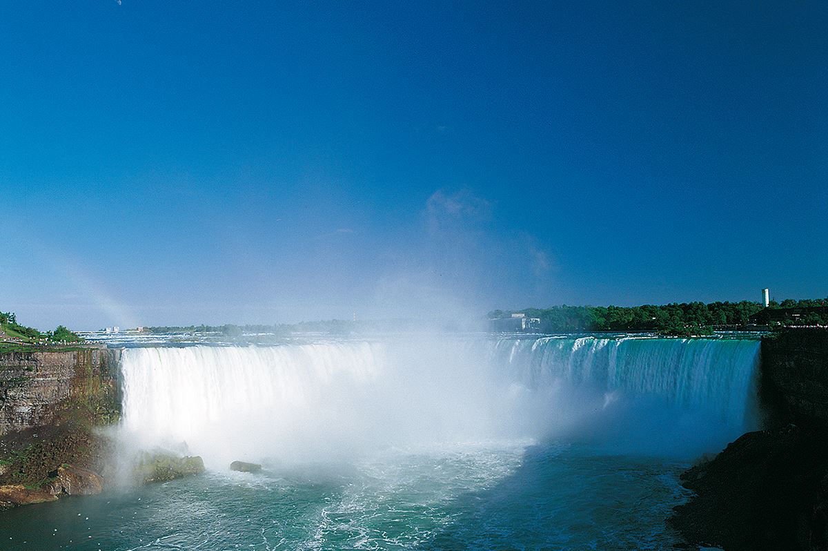 Auf geht es zum letzten Highlight der Reise - und was für einem! Wir fahren in das hübsche Städtchen Niagara-on-the-lake. Zum MIttagessen geht es hoch hinaus, vom Skylone Tower bieten sich spektakuläre Blicke über die gigantischen Niagarafälle. Ein kleiner Spaziergang entlang der Wasserfälle, dann steigen wir an Bord der Hornblower und kommen den Fällen ganz nahe. Hier fließen etwa 90 Prozent der Wassermassen des Niagara River über die 58 Meter hohe Geländestufe in den Ontariosee. Ein Inferno aus weißer Gischt. 260 km