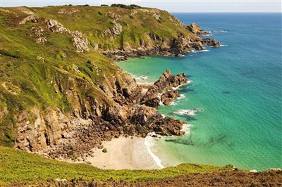 Die Insel kann bei einer Rundreise durch Südengland leicht mit der Fähre erreicht werden. Die Insel wird landwirtschaftlich sehr genutzt. Vor allem die Viehhaltung beansprucht hier einen großen Teil. Sonst herrscht viel Hügelland und - besonders im Süden - zahlreiche Steilküsten vor. Schon die Römer hatten die Bedeutung des Eilands entdeckt. So war Sarmia - so der damalige Name - ein wichtiges Handelszentrum. Im Mittelalter eroberte Wilhelm der Eroberer die Insel und wurde darüber hinaus König Englands. Seit dieser Zeit ist die Insel Guernsey Kronbesitz. Der französische Dichter Victor Hugo lebte lange auf der Insel. Heute ist in St. Peter Port im Hauteville House - Hugos damaligen Wohnsitz - ein schönes Museum untergebracht..
