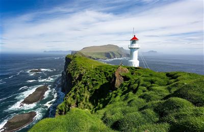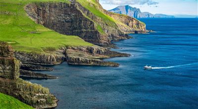 Noch abgeschiedener ist Suðuroy, die südlichste Insel des Archipels, die sich ganz im Süden befindet. Dramatische Steilküsten, einsame Pfade, bunte Dörfer und ein rauer, ursprünglicher Charme – das erwartet Sie hier. Die Überfahrt mit der Fähre dauert etwa zwei Stunden, was ein echtes Inselerlebnis ist. Besonders eindrucksvoll sind die Felsformationen von Beinisvørð, die Klippen von Akraberg und die kleinen Orte Tvøroyri und Fámjin.Die winzigen Dímun-Inseln – Stóra und Lítla Dímun – sieht man meist nur aus der Ferne. Lítla Dímun wird nicht bewohnt und ist nur gelegentlich per Helikopter erreichbar – ein Symbol für die abgeschiedene Seite der Färöer.