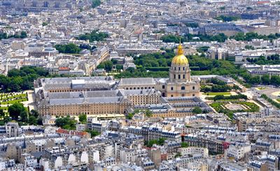 Beeindruckend ist auch die goldene Kuppel, die den Invalidendom erst zum Dom macht. Diese ist mit Blattgold aus Schwabach/Bayern geschmückt.Die Domkirche gehört zum Kriegsinvalidenheim (Hôtel national des Invalides). Das Heim diente zur Aufnahme von Kriegsversehrten. Heute befinden sich einige Museen im gesamten Bauwerk.