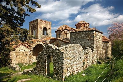 Auch eine Kirche, die in eine Felsengrotte gebaut wurde, können Sie hier besuchen. Ein Kloster ist hier sogar noch von Nonnen bewohnt: Das Kloster Pantanassa. Es wurde im 15. Jahrhundert gegründet. In der Klosterkirche, die hauptsächlich in westlichem Stil erbaut wurde, können Sie Fresken byzantinischer Maler bewundern. Sie stellen Szenen aus der Bibel dar. Ein berühmtes weltliches Gebäude in Mystras ist der Despotenpalast. Lassen Sie während Ihrer Griechenland-Rundreise die Baukunst dieser Zeit auf sich wirken und genießen Sie die wunderschöne Aussicht von dieser Anhöhe!