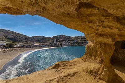Urige Tavernen, verwinkelte Gassen und ein magisches Flair prägen das Dorf. Fantastische Ausblicke über das Meer sind hier garantiert und lassen Sie den Alltag etwas vergessen. Zählen Sie sich zu den Sonnenanbetern, werden Sie vom Matala Beach begeistert sein. Im Restaurant Scala Fish Bar können Sie sich mit frischem Fisch verwöhnen lassen. Genießen Sie Ihre Rundreise durch Griechenland und besuchen Sie die Insel Kreta. Jeden Sommer findet hier das Matala Beach Festival statt, welches Sie nicht auslassen sollten.