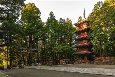 Wenn man das Mausoleum von Tokugawa Ieyasu besuchen möchte, geht man durch einen ruhigen Zedernwald.