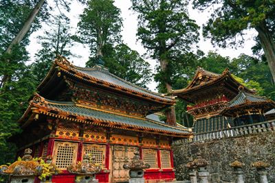 Ein Höhepunkt des Rundgangs ist das prachtvolle Yōmeimon-Tor, dessen hunderte filigrane Schnitzereien Szenen aus der Natur und der japanischen Mythologie zeigen.