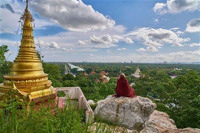 Nordöstlich Mandalays, der zweitgrößten Stadt Myanmars, erhebt sich der besonders eindrucksvolle, rund 250 Meter hohe Mandalay Hill. Dieser majestätisch in den Himmel ragende Hügel verlieh der Stadt ihren Namen und beherbergt zudem zahlreiche Pagoden, Schreine und Klöster. Doch nicht nur wegen der vielen beeindruckenden Bauwerke ist ein Erklimmen des Hügels lohnenswert, sondern auch auf Grund des einzigartig bezaubernden Panorama-Blicks über die sich am Fuße des Hügels ausbreitende Millionenmetropole.