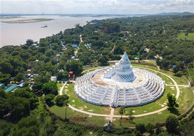 Eine wahrhaft göttliche Sehenswürdigkeit, die Sie bei einer Rundreise durch Myanmar etwas Zeit schenken sollten, ist die prachtvolle Hsinbyume Pagode in Mingun.Das buddhistische Heiligtum, welches im Jahr 1816 von König Bagyidaw für seine Lieblingsfrau Hsinbyume erbauen ließ, ist ein unvergesslicher Anblick.