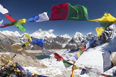Wenn Sie eine Nepal Rundreise machen, können Sie die Faszination, die von diesem Berg ausgeht, auch spüren, ohne ihn zu besteigen. Seine majestätische, alles überragende Größe mit den Lhotse-Gipfeln im Hintergrund, der weiße Berg vor strahlend blauem Himmel - nicht nur Fotografen geht hier das Herz auf. Wenn Sie sich während Ihrer Nepal Rundreise ein ganz besonderes Erlebnis gönnen möchten, buchen Sie einen Rundflug, ab Kathmandu gibt es dazu die Möglichkeit. So können Sie die unglaubliche Schönheit des Himalayagebirges aus der Luft kennenlernen, während Sie im Helikopter über Gletscher, Berge und himmelblaue Seen fliegen. Auch das Basislager mit den bunten Gebetsfahnen, von dem aus die Bergsteiger zu den letzten Höhenmetern aufbrechen, können Sie so von oben betrachten. Wer wandern möchte, kann dies im angrenzenden Sagarmatha-Nationalpark tun und dabei traumhafte Blicke auf den Berg der Berge genießen. Mit mehr Zeit ist der Mount Everest Trek zum Basislager zu empfehlen.