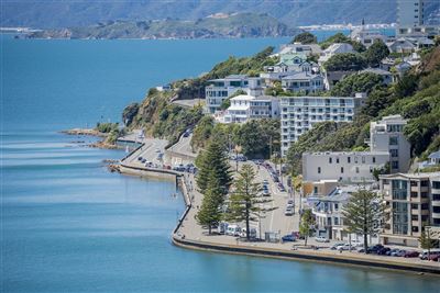 Die Wellington Waterfront ist ein preisgekröntes Stadtentwicklungsprojekt, das den Hafen mit der Innenstadt nahtlos verbindet. Die 2 Kilometer lange Promenade führt von der Wellington Railway Station bis zum Oriental Parade und bietet Restaurants, Cafés, Kunstinstallationen und Erholungsgebiete. Frank Kitts Park, Waitangi Park und Oriental Bay bieten Grünflächen und Strände im Herzen der Stadt. Die Wellington Harbourside Market am Sonntag ist ein beliebter Bauernmarkt mit lokalen Produkten.