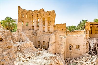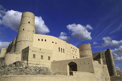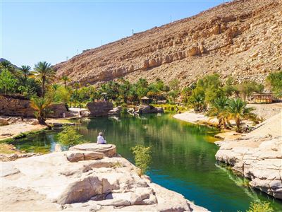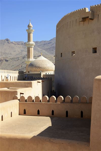 Abseits der Küsten gibt es auch in den Gebirgsregionen und Wüstenlandschaften des Landesinneren viel zu entdecken. Die Wahiba-Wüste im Oman Inland ist nicht nur Lebensraum für seltene Tiere, sondern auch für Beduinen, die sich perfekt an die klimatischen Bedingungen angepasst haben. Eine Übernachtung im Wüstencamp ist ein ebenso großartiges Erlebnis wie ein Besuch im Wadi Bani Khalid, eine der schönsten Oasen des Sultanats, deren Flusslauf ständig Wasser führt. Wer noch mehr sehen möchte, besucht die erst 1992 ausgegrabene antike Stadt Ubar und die Ortschaften Nizwa und Rustaq. Nizwa ist eine Oasenstadt, deren ausgedehnte Grünanlagen beeindrucken. Wer aus der Hauptstadt kommt, kann einen Abstecher zu den Ruinen von Birkat al Mauz machen. Rustaq hat eine historische Festungsanlage aus dem 17. Jahrhundert zu bieten. Wer gerne in der Natur unterwegs ist, besteigt den Jebel Shams, den höchsten Berg des Landes - die Ausblicke von oben erinnern zweifelsohne an den Grand Canyon. Zu den Highlights gehört auch die Palastfestung Schloss von Jabrin. Im 17. Jahrhundert erbaut, nutze der Sultan das Schloss von Jabrin als Sommerresidenz - heute kann man hier in die damalige Atmosphäre bei Hof eintauchen.