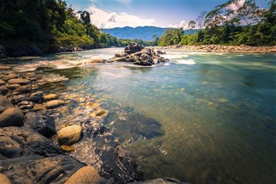 Eine Bootsfahrt auf dem mächtigen, von dichtem Regenwald umgebenen Fluss Madre de Dios ist ein Eintauchen in die beeindruckende Natur. Eine Vielzahl von Tieren, darunter Jaguare, farbenprächtige Papageien und eine erstaunliche Vielfalt von Affenarten, leben in den Wäldern entlang des Flusses.