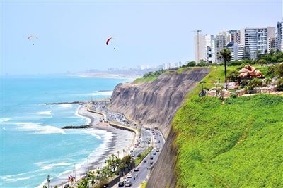 Die Costa Verde, eine grüne Küstenlinie, die sich unterhalb der Steilküste erstreckt, ist ein beliebter Ort zum Spazierengehen, Radfahren und Paragliding. Besonders bekannt ist der „Malecón de Miraflores“, eine malerische Uferpromenade, die sich entlang der Küste erstreckt und atemberaubende Ausblicke bietet, vor allem wenn die Sonne untergeht.