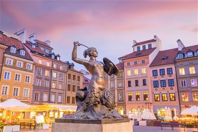 Warschau ist die Hauptstadt von Polen und ist ein wichtiges Wirtschafts- und Handelszentrum in Mittel- und Osteuropa. Zahlreiche Theater, Museen und Baudenkmäler gibt es in dieser geschichtsträchtigen Stadt an der Weichsel, die Sie bei Ihrer Rundreise durch Polen unbedingt besichtigen sollten. Während des Zweiten Weltkrieges wurde Warschau weitgehend zerstört, danach jedoch originalgetreu wieder aufgebaut. So auch die Altstadt, die zum Unesco-Welterbe zählt. Sie ist von Stadtmauern aus dem Mittelalter umgeben und ist bekannt für die farbigen Patrizierhäuser. In der Stadt gibt es neben dem Königsschloss unzählige beeindruckende Paläste, die einen Besuch wert sind: Sehr bekannt sind Lazienki Królewskie mit dem königlichen Lazienki-Park und Wilanów. Ebenfalls gibt es viele Kirchen und Denkmäler in der Stadt, die Sie erkunden können. Einen hervorragenden Ausblick über die Stadt erhalten Sie von der Aussichtsterrasse des Hauses der Kultur und Wissenschaft, dem höchsten Gebäude Warschaus. In der polnischen Hauptstadt gibt es auch viele Parks, wo Sie nicht nur die Natur genießen, sondern sich auch Denkmäler ansehen können.