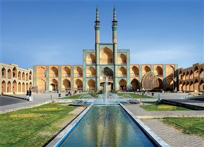 Auf einem Spaziergang entlang der Stadtmauer oder durch den Park Bagh-e Dolatabad, mit seinem 33 m hohen Windturm, können Sie in eine besondere Atmosphäre eintauchen. Des Weiteren bietet die Stadt zahlreiche Sehenswürdigkeiten: Neben dem Feuertempel, der ein Symbol des Zoroastrismus darstellt, gibt es das berühmte Mausoleum der 12 Imame. Zudem können viele Moscheen besichtigt werden, unter anderem die im 12. Jahrhundert errichtete Freitagsmoschee mit vielen farbigen Mosaiken. Auf Ihrer Rundreise durch den Iran stellt diese Stadt mit ihren alten Bauwerken ein idealer Zwischenstopp dar.