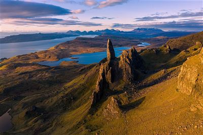 Da der gesamte Komplex über dem Loch Leathan thront und die Szenerie neben den Basaltgesteinen von viel Grün geprägt ist, ist der Anblick hier so idyllisch wie gleichzeitig faszinierend. So diente "The Old Man of Storr" auch schon mehrfach als Filmkulisse. Kein Wunder, dass er ein beliebter Zielpunkt bei einer Rundreise durch Schottland ist.