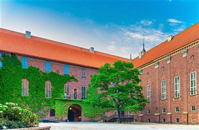 Vom Ost- und Südflügel blickt man auf den Mälarsee. Markant ist der 106 Meter hohe Eckturm. Auf ihm thront das Reichswappen Tre Kronor. Für den Turm wurden über 2,5 Millionen Backsteine verwendet. Nach 365 Treppenstufen haben Besucher die Turmspitze erreicht. Von oben hat man einen eindrucksvollen Ausblick über Stockholm. Zudem befindet sich hier auch ein sehr interessantes Turmmuseum. Ein Besuch des Stadhuset bei einer Rundreise durch Schweden lohnt in jedem Fall. Der Goldene Saal - Gyllene salen - mit seinen aufwendig ausgeführten Gold-Mosaiken oder die Blaue Halle, in der das Festessen für die Gewinner des Nobelpreises abgehalten wird, sind eindrucksvolle Räume.