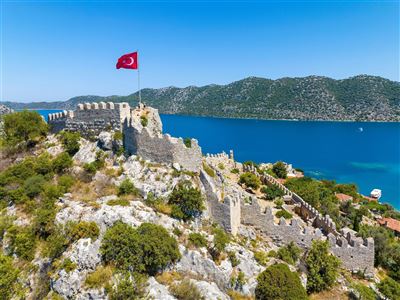 Ein besonderes Highlight der Burg ist die Aussichtsplattform, die einen atemberaubenden Panoramablick auf das Meer und die umliegenden Inseln bietet. Die Burg ist auch mit dem in der Nähe gelegenen antiken Theater von Kekova verbunden, das sich zum Teil unter Wasser befindet und sowohl für Taucher als auch für Geschichtsinteressierte gleichermaßen faszinierend ist.