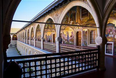 Bewundern Sie die Schätze des Klosters Kykkos. Fantastische Arkadengänge, herrliche Fresken und Bilder aus den Kreuzzügen der Geschichten aus der Bibel erwarten Sie hier. Tauchen Sie ein in die Vergangenheit Zyperns. Bunte Mosaike und wertvolle Reliquien aus der Geschichte prägen das Kloster Kykkos. Das schöne Bauwerk finden Sie im Troodos-Gebirge, umsäumt von der herrlichen Natur Zyperns.
